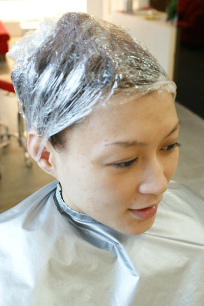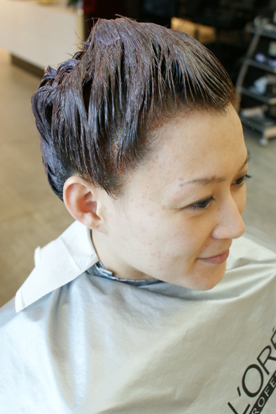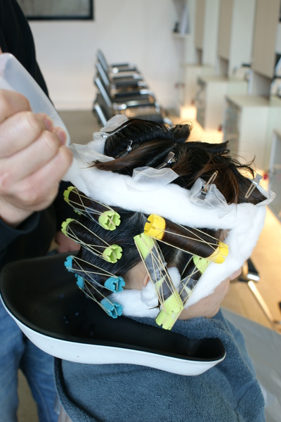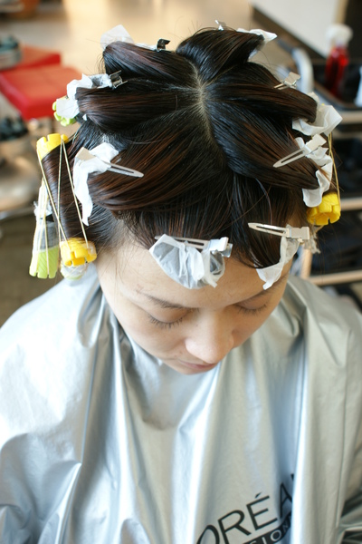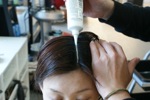 開始上第一劑藥水,從新改變毛髮裡的結構組織。