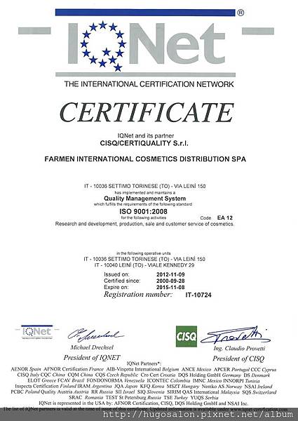 【 歐盟質量認證學院證書 】 【 ISO9001國際認證聯盟證書 】
